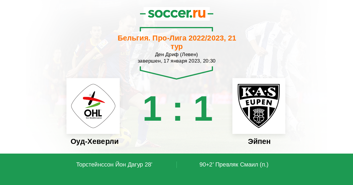 Протокол матча Оуд-Хеверли против Эйпен