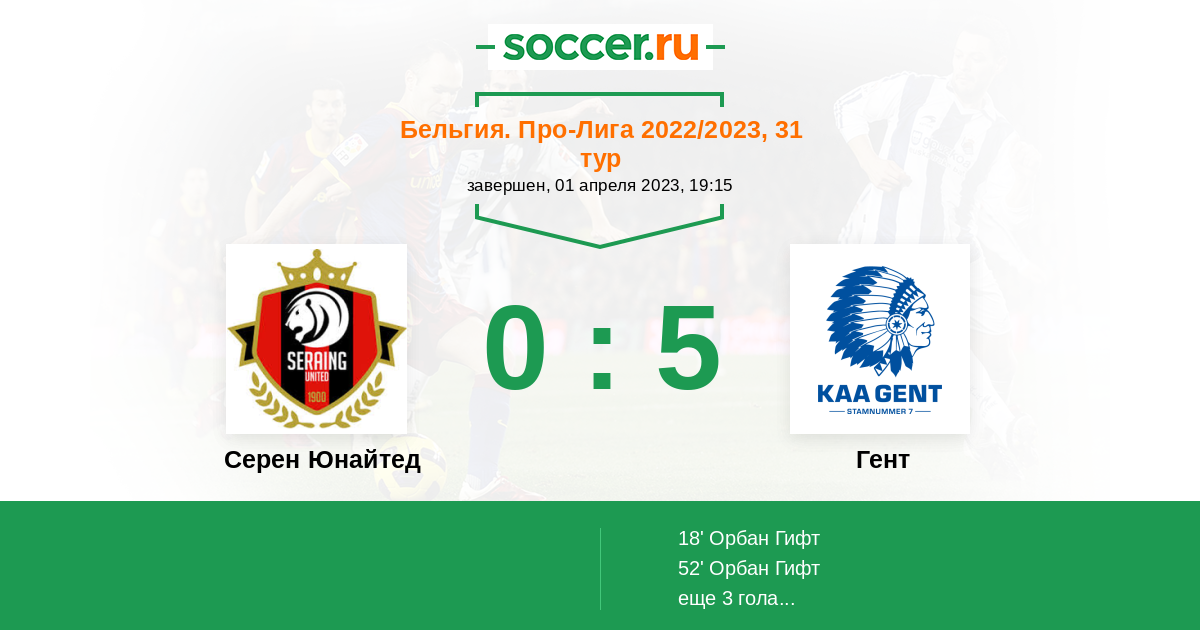 Протокол матча Серен Юнайтед против Гент