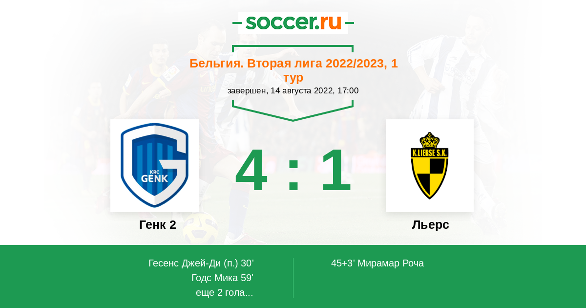Протокол матча Генк 2 против Льерс