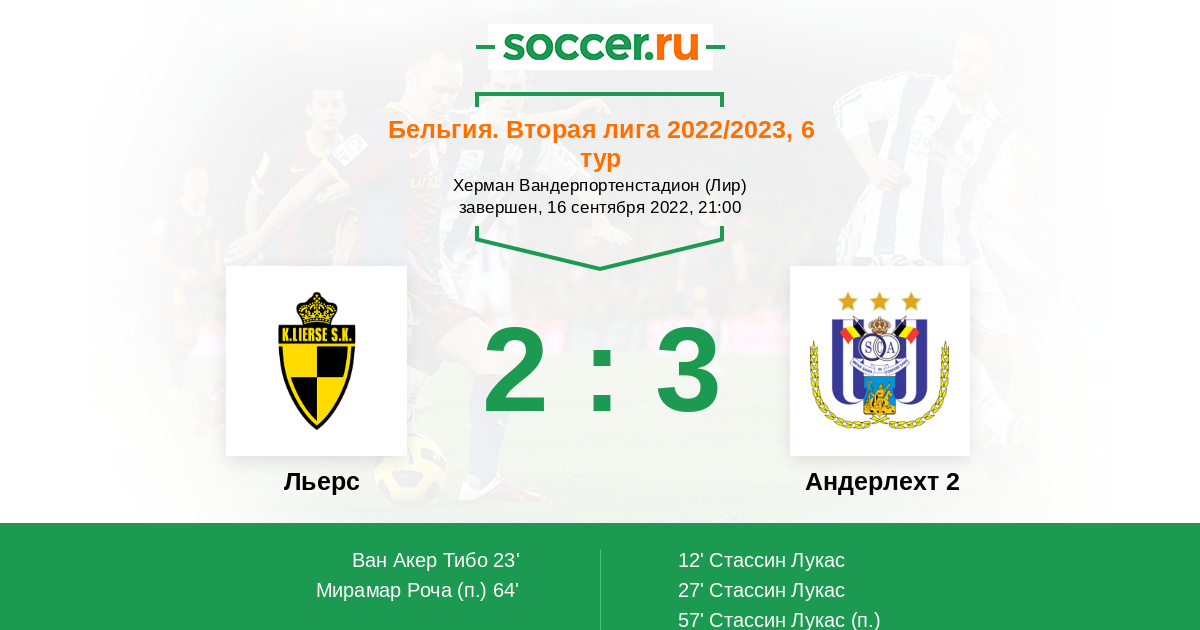 23' (1:1) Ван Акер Тибо (8) (Де Шривер Гийом (10))