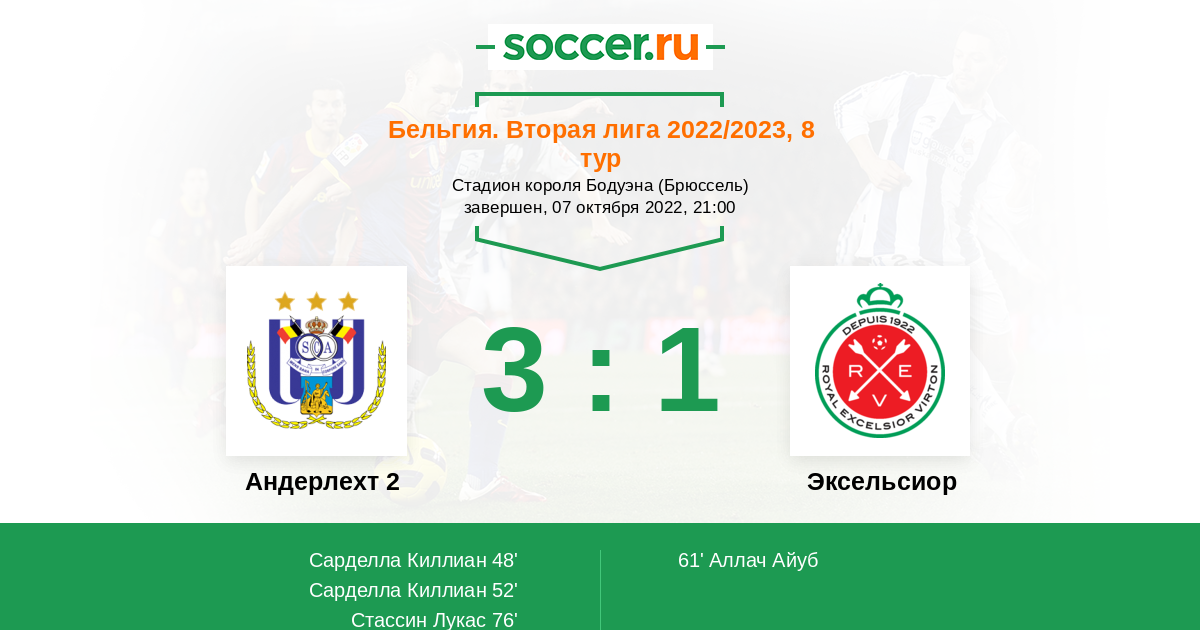 Протокол матча Андерлехт 2 против Эксельсиор
