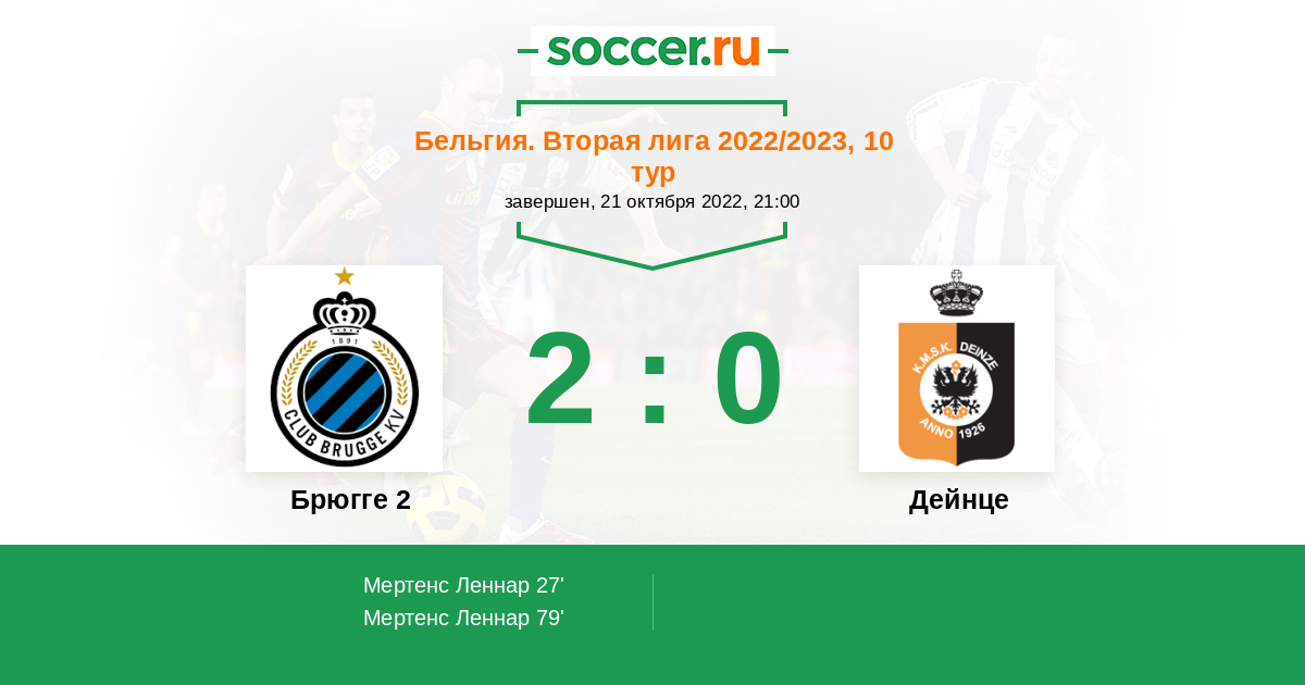 Протокол матча Брюгге 2 против Дейнце