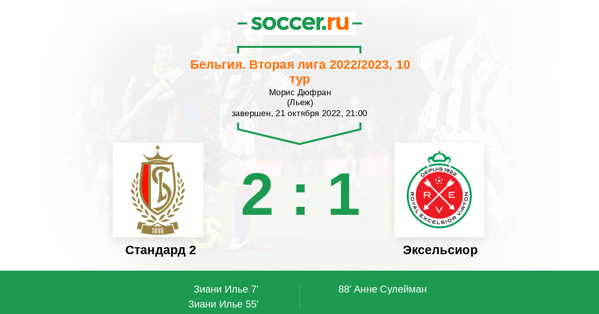 Протокол матча Стандард 2 против Эксельсиор