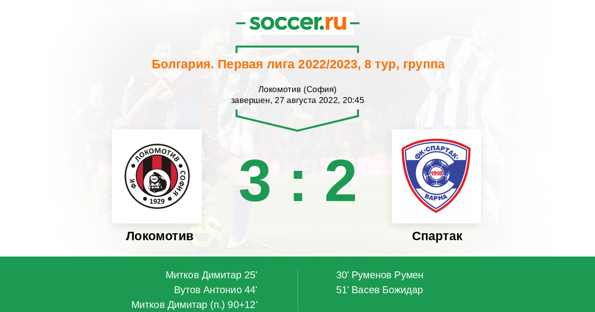 Протокол матча Локомотив против Спартак