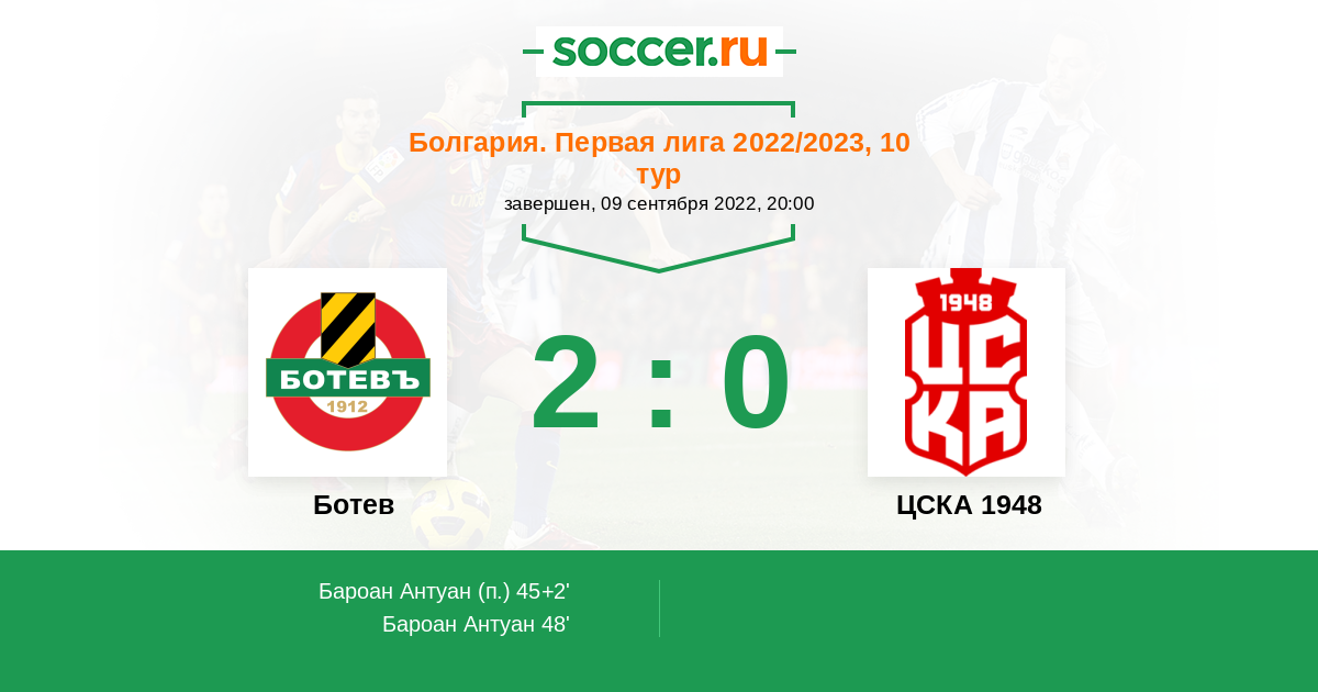 48' (2:0) Бароан Антуан (11) (Ману Элвис (28))