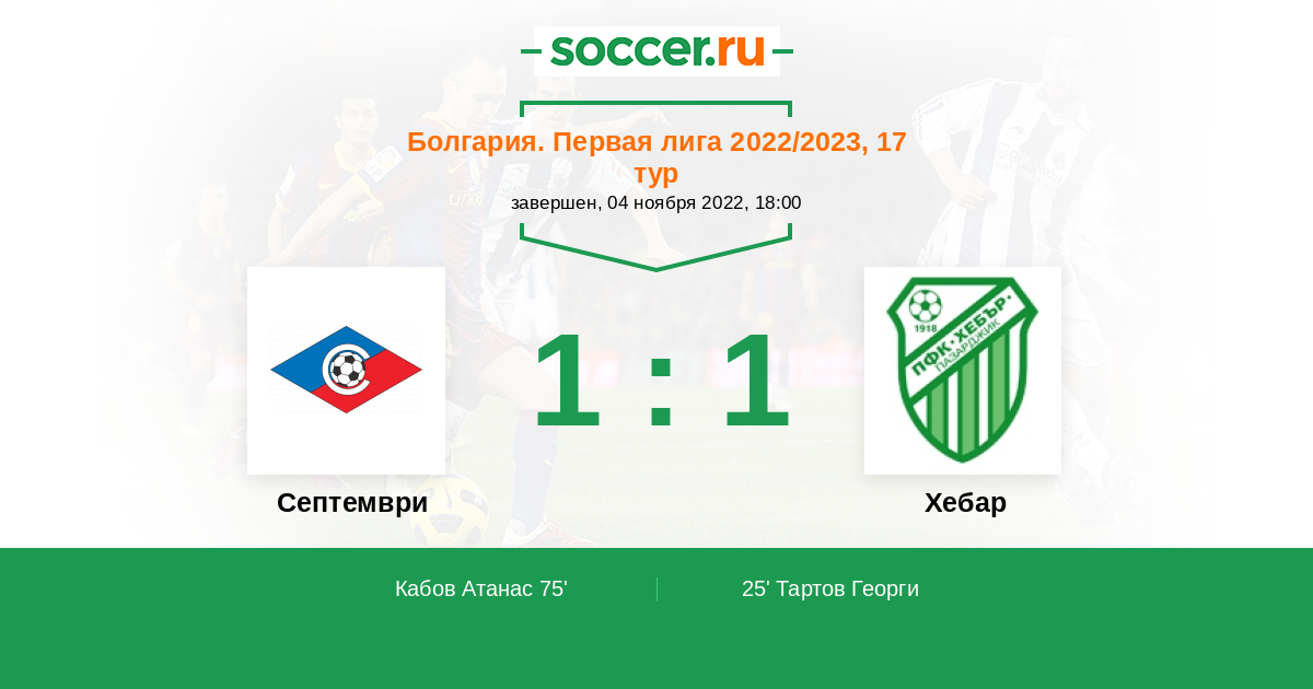 Протокол матча Септември против Хебар