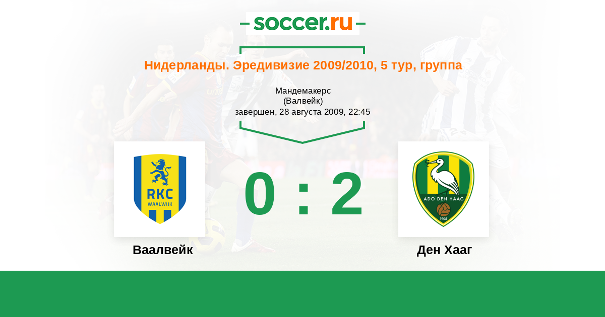 Нидерланды. Эредивизи 14.09.2006 Ваалвейк Логотип футбольный клуб Ваалвейк (Валвейк) 1:0 Логотип футбольный клуб Ден Хааг (Гаага) Ден Хааг