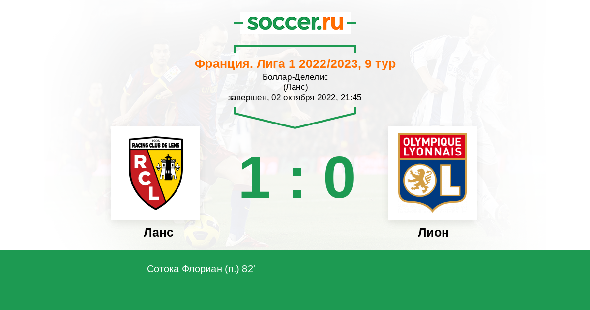 Протокол матча Ланс против Лион