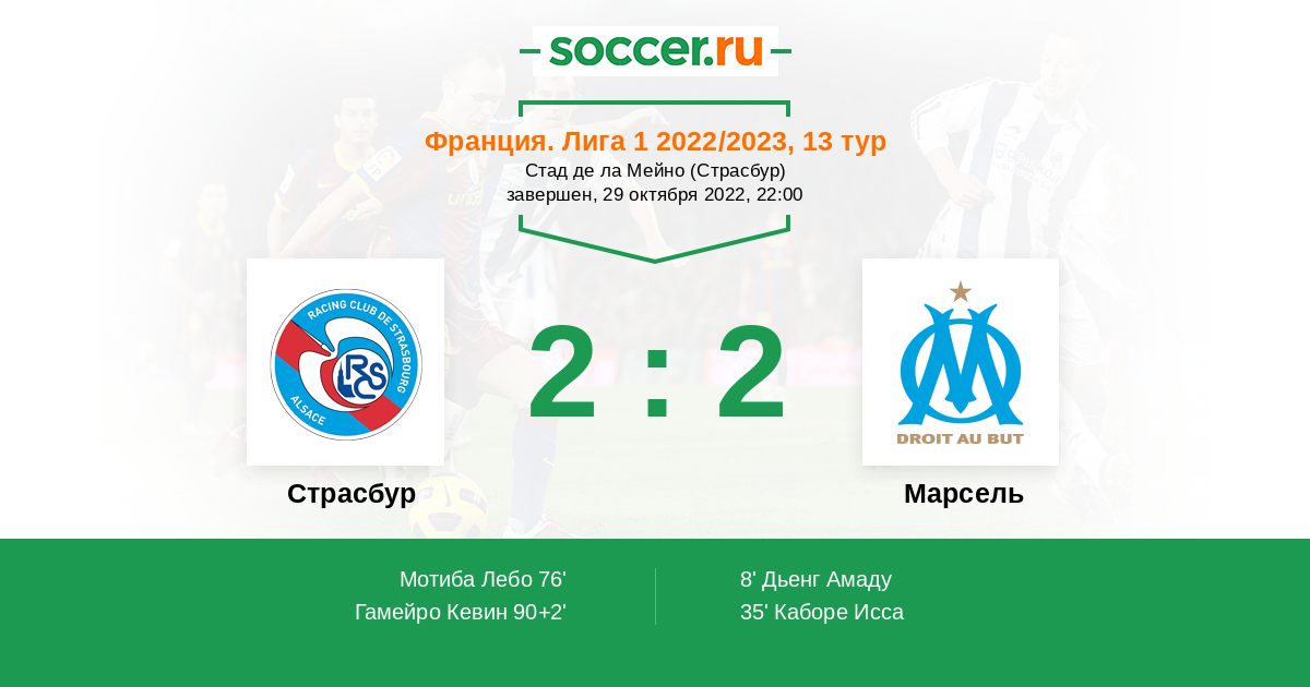 Протокол матча Страсбур против Марсель