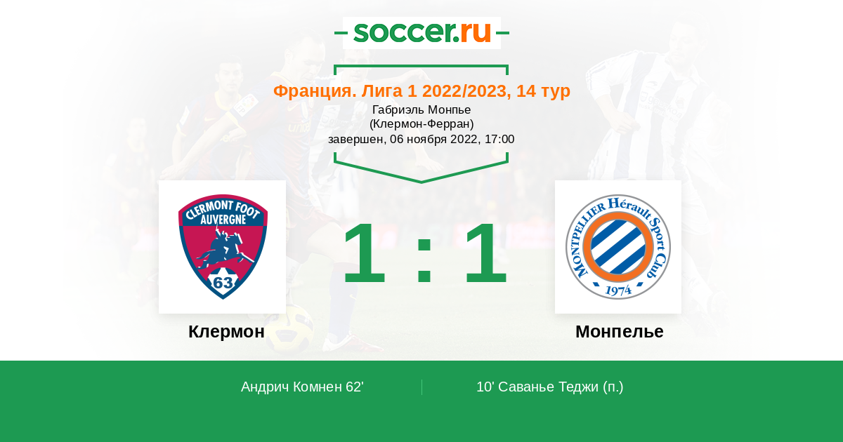Протокол матча Клермон против Монпелье