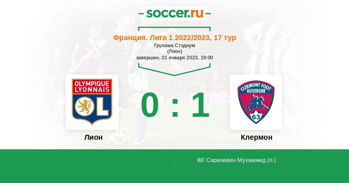 Протокол матча Лион против Клермон