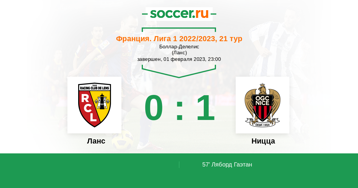 Протокол матча Ланс против Ницца