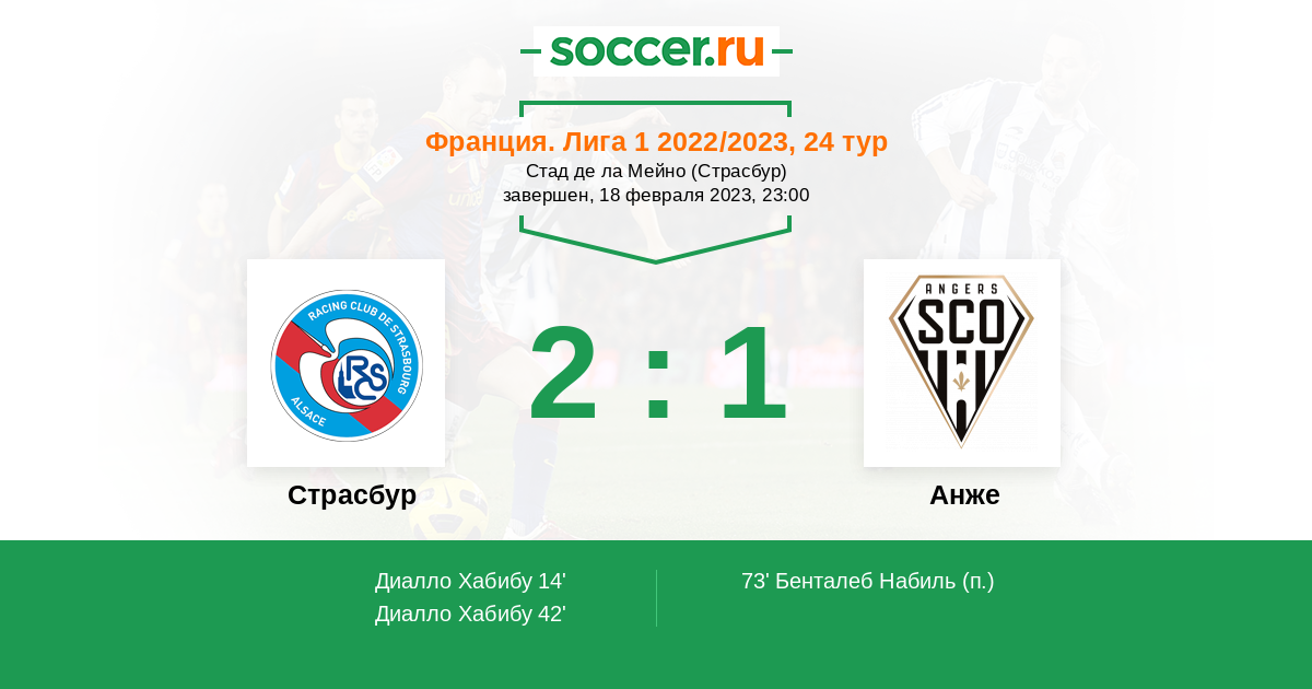 Протокол матча Страсбур против Анже