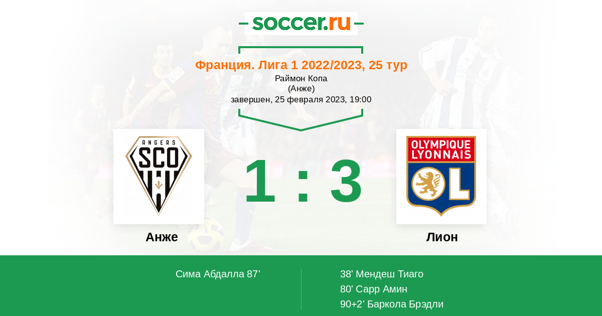 Протокол матча Анже против Лион
