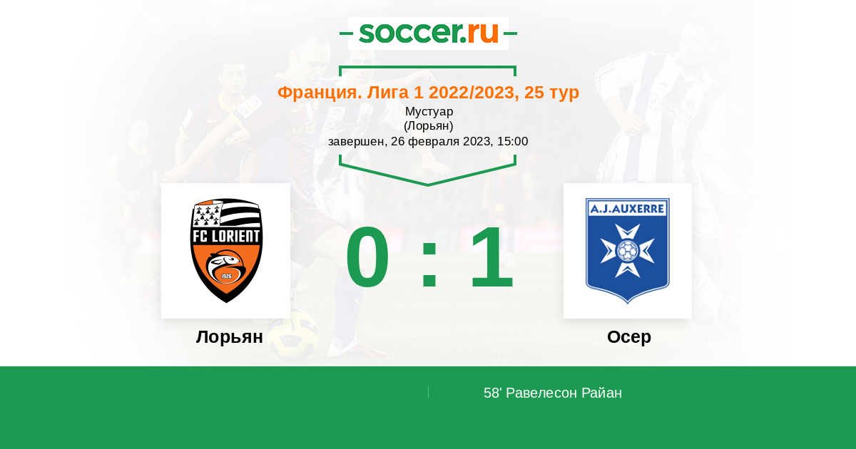 Протокол матча Лорьян против Осер