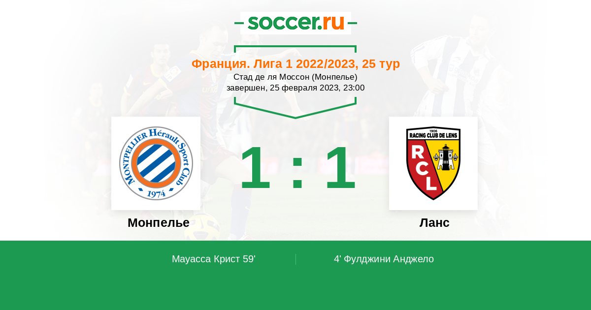 Протокол матча Монпелье против Ланс