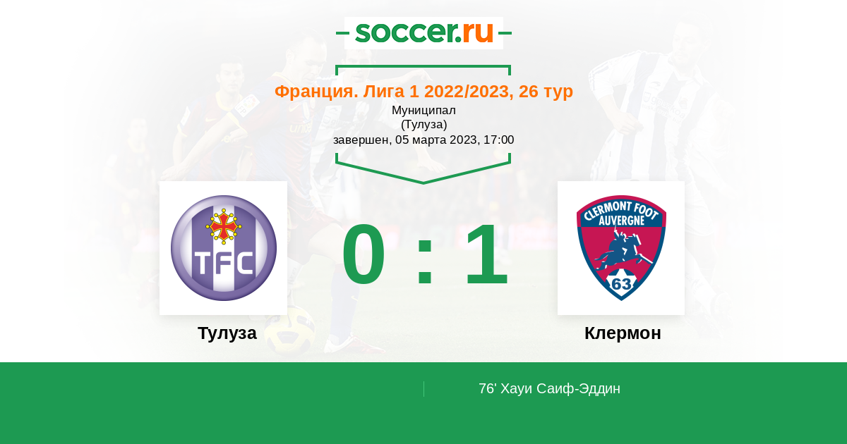 Протокол матча Тулуза против Клермон