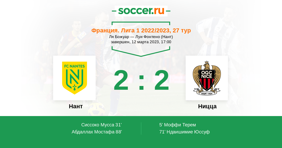 Протокол матча Нант против Ницца