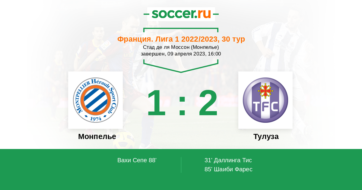 Протокол матча Монпелье против Тулуза