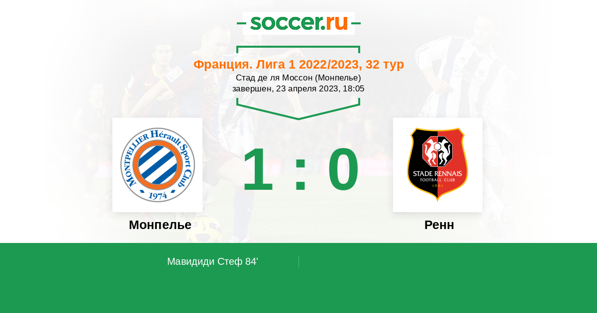 Протокол матча Монпелье против Ренн