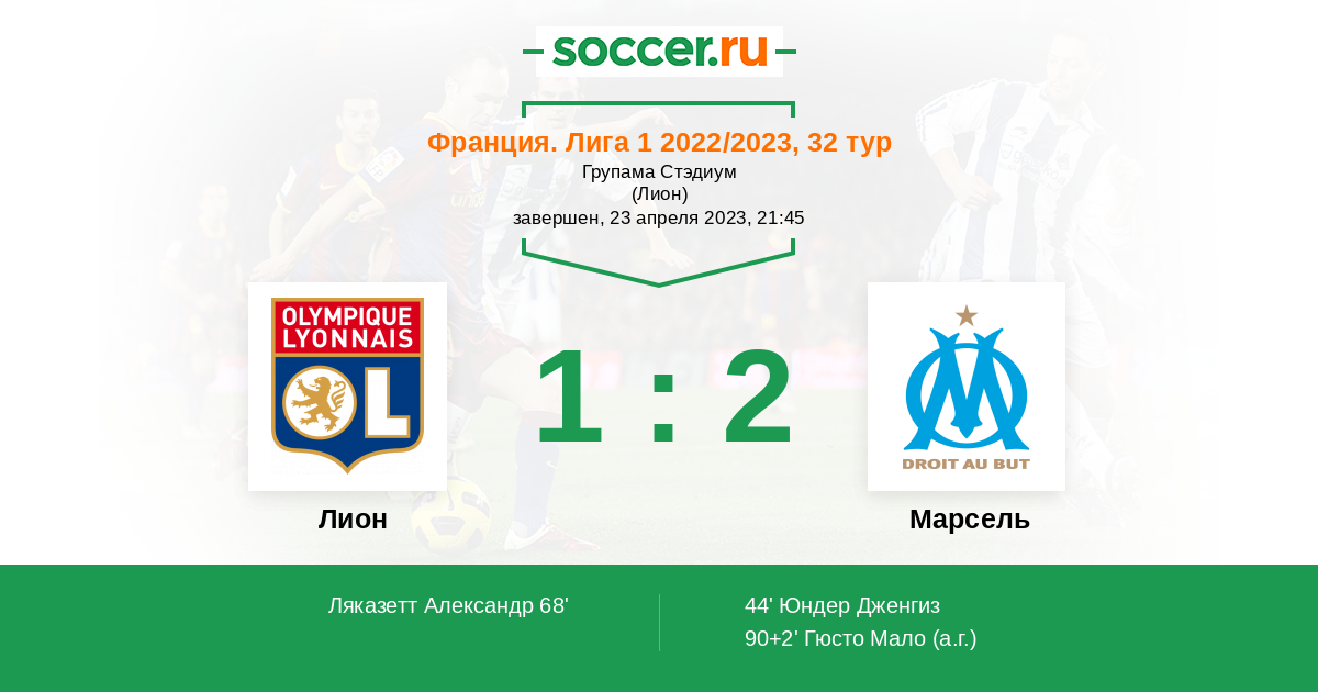 Протокол матча Лион против Марсель