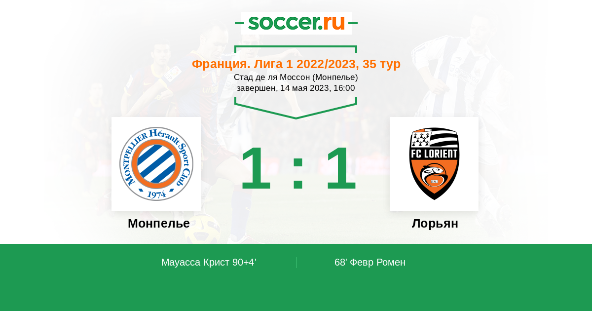 Протокол матча Монпелье против Лорьян