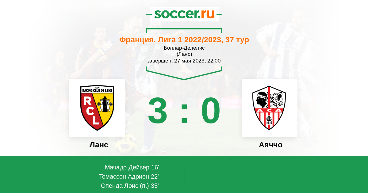 Протокол матча Ланс против Аяччо