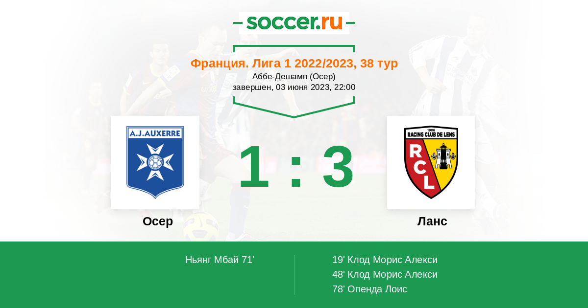 Протокол матча Осер против Ланс
