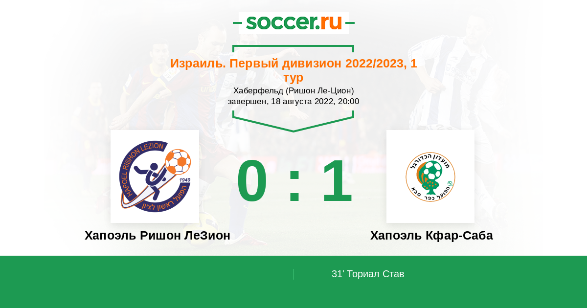 Протокол матча Хапоэль Ришон ЛеЗион против Хапоэль Кфар-Саба