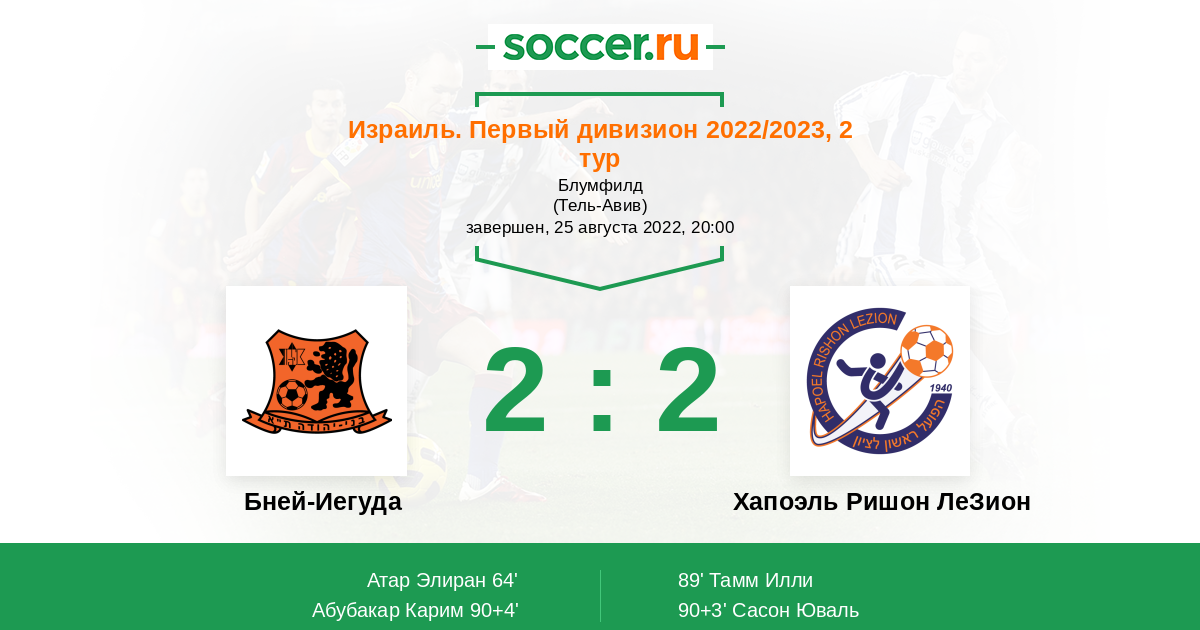 Протокол матча Бней-Иегуда против Хапоэль Ришон ЛеЗион