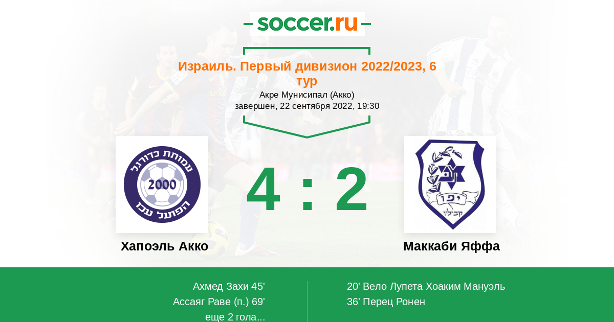Протокол матча Хапоэль Акко против Маккаби Яффа