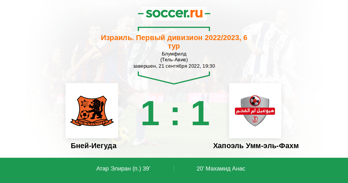Протокол матча Бней-Иегуда против Хапоэль Умм-эль-Фахм