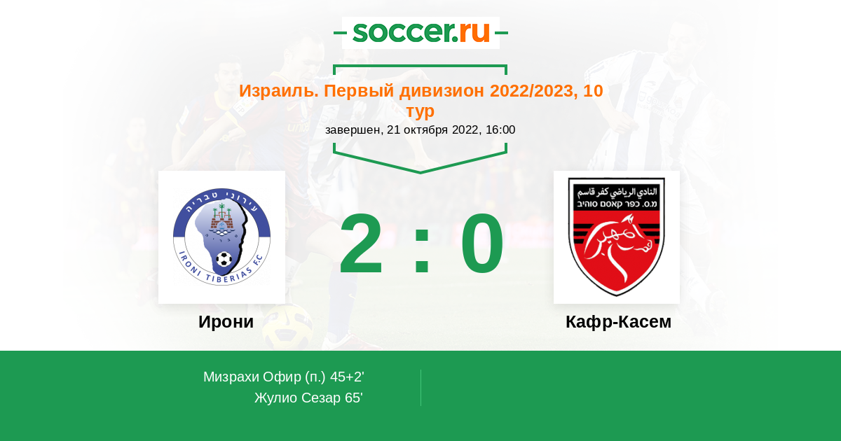 Протокол матча Ирони против Кафр-Касем