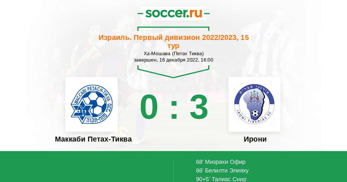 Протокол матча Маккаби Петах-Тиква против Ирони