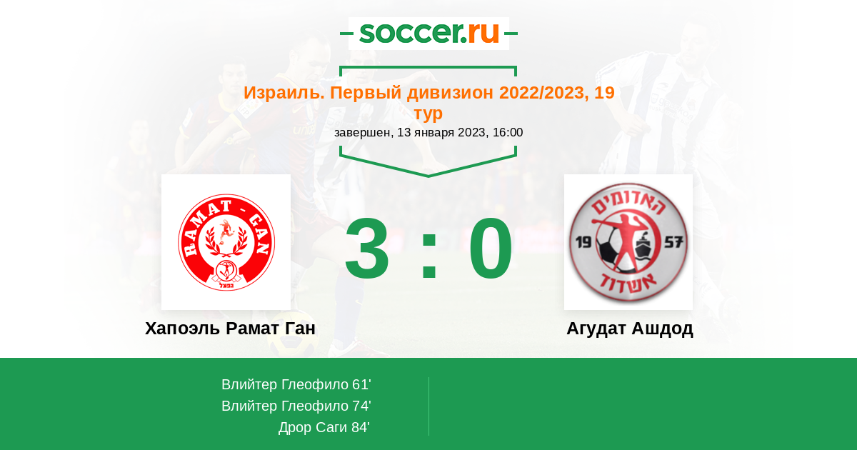 Протокол матча Хапоэль Рамат Ган против Агудат Ашдод