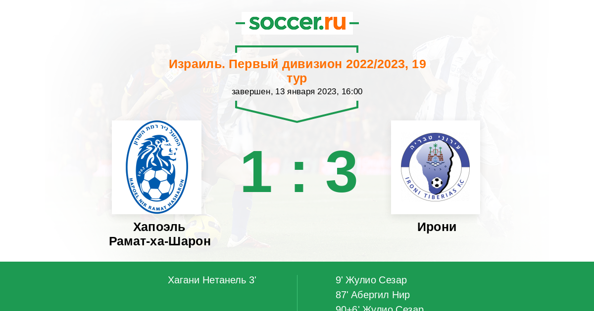 Протокол матча Хапоэль Рамат-ха-Шарон против Ирони