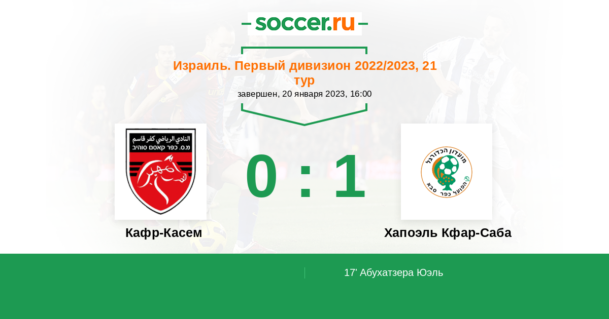 Протокол матча Кафр-Касем против Хапоэль Кфар-Саба