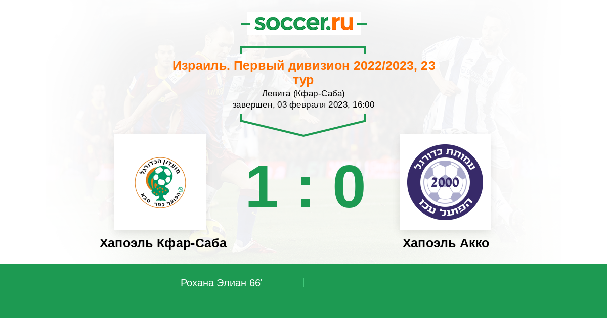 Протокол матча Хапоэль Кфар-Саба против Хапоэль Акко