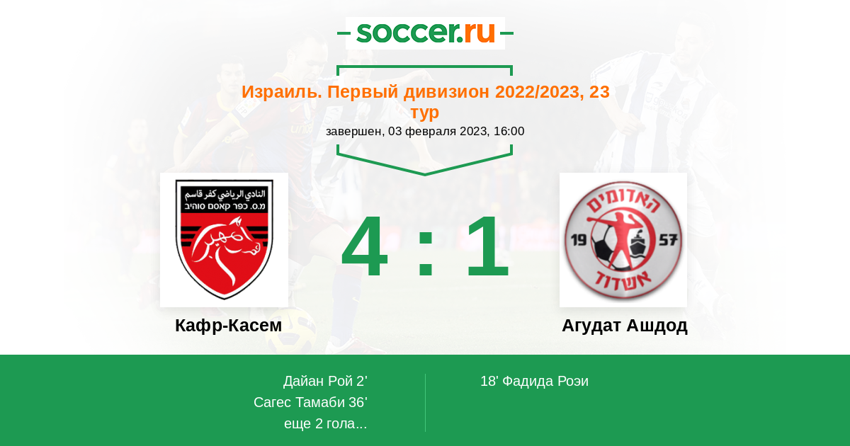 Протокол матча Кафр-Касем против Агудат Ашдод