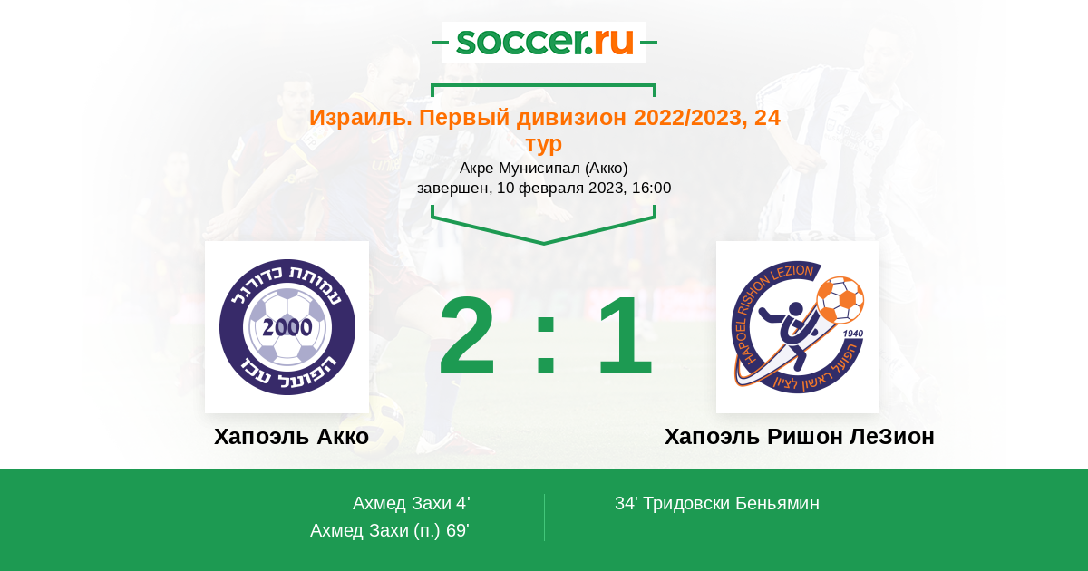 Протокол матча Хапоэль Акко против Хапоэль Ришон ЛеЗион