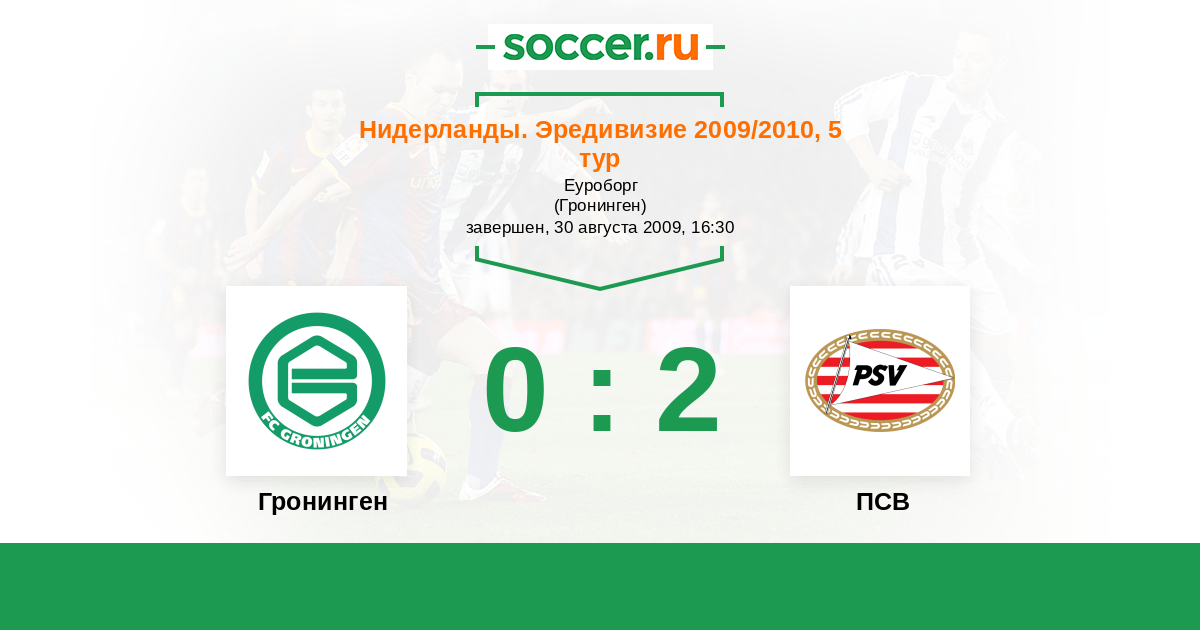Нидерланды. Эредивизи 25.09.2010 ПСВ Логотип футбольный клуб ПСВ (Эйндховен) 1:1 Логотип футбольный клуб Гронинген Гронинген