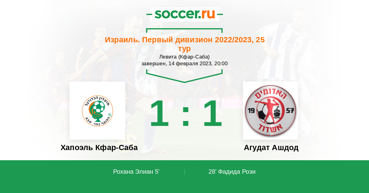 Протокол матча Хапоэль Кфар-Саба против Агудат Ашдод