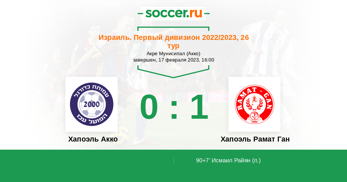 Протокол матча Хапоэль Акко против Хапоэль Рамат Ган