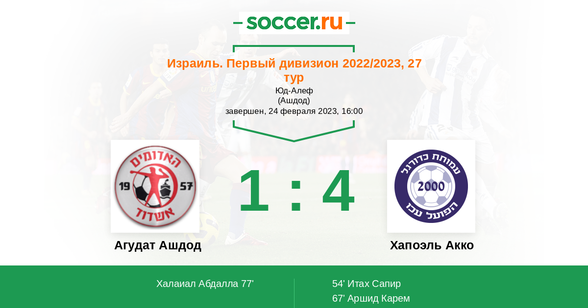 Протокол матча Агудат Ашдод против Хапоэль Акко