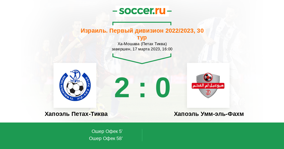 Протокол матча Хапоэль Петах-Тиква против Хапоэль Умм-эль-Фахм