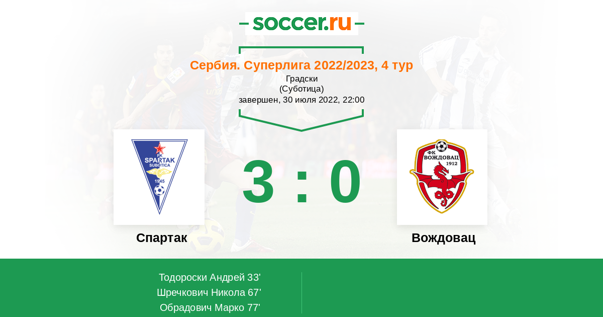 Протокол матча Спартак Суботица против Вождовац