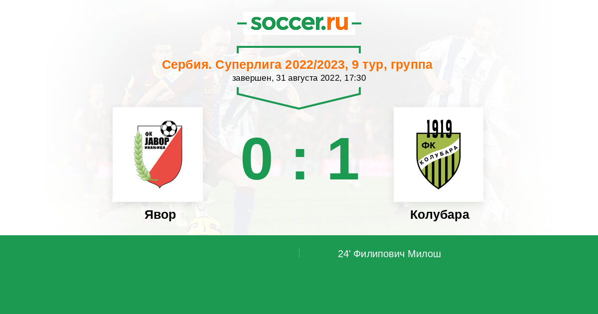 Протокол матча Явор против Колубара