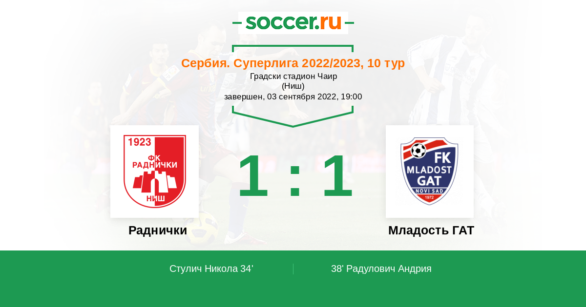 Протокол матча Раднички против Младость ГАТ