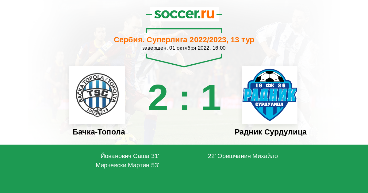 Протокол матча Бачка-Топола против Радник Сурдулица