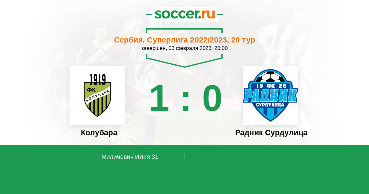 Протокол матча Колубара против Радник Сурдулица